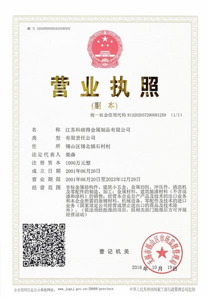 江苏科瑞得金属制品有限公司营业执照